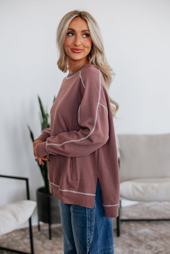 Rose Taupe & Ivory Stitchline Boxy Sweatshirt