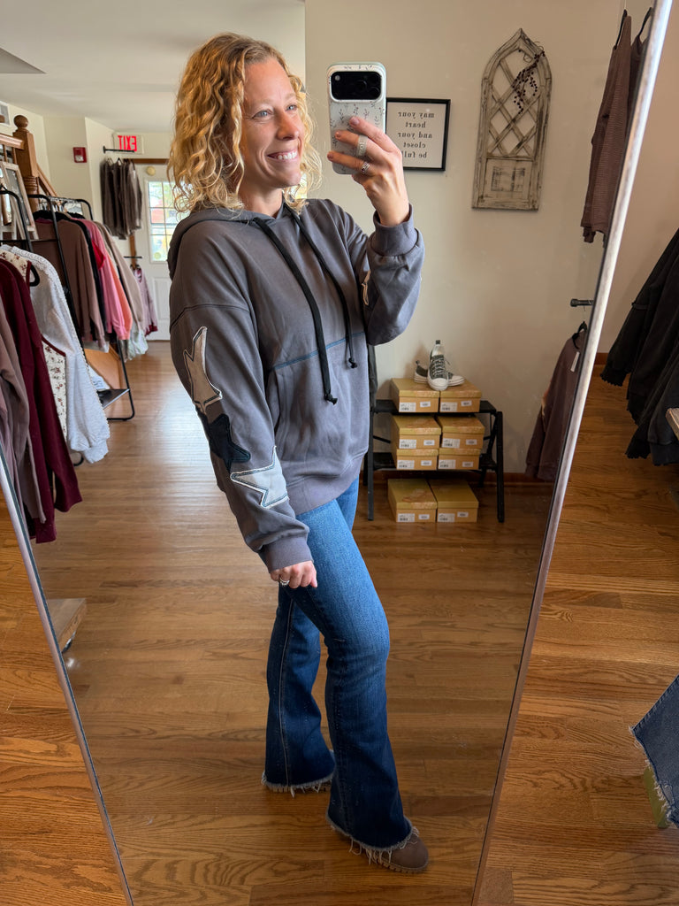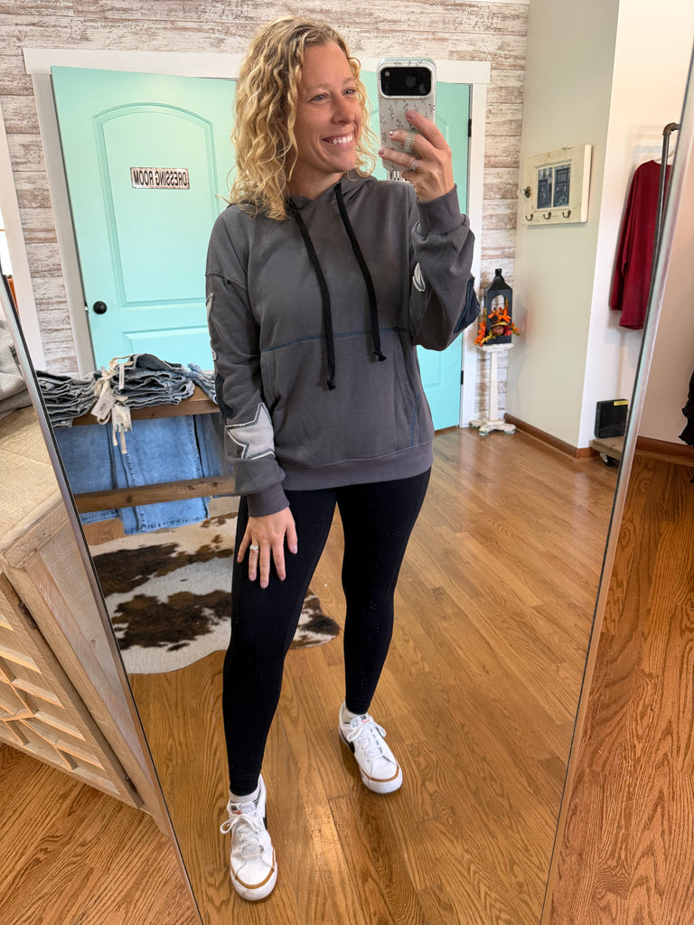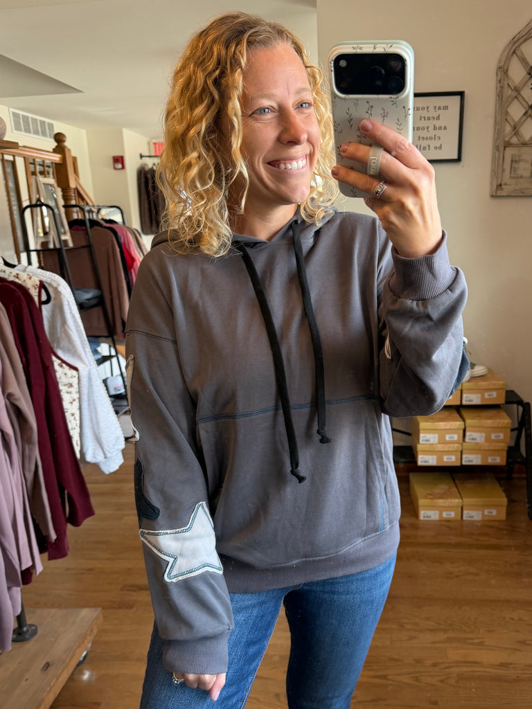 Charcoal Star Patchwork Mineral Wash Hooded Sweatshirt