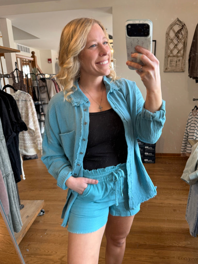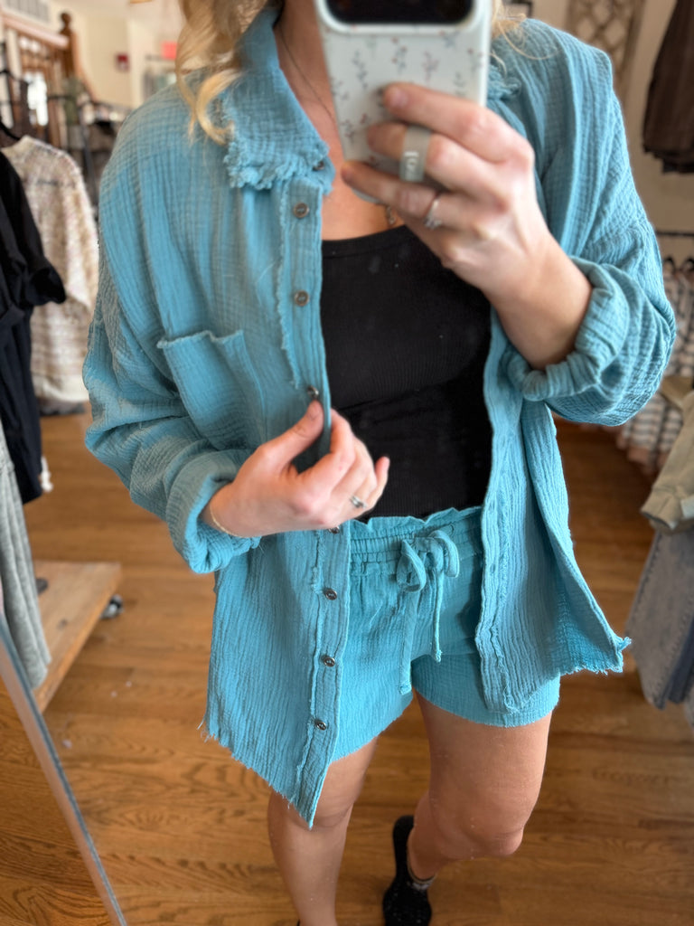 Dusty Teal Linen Shorts