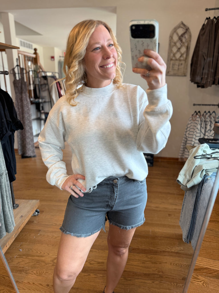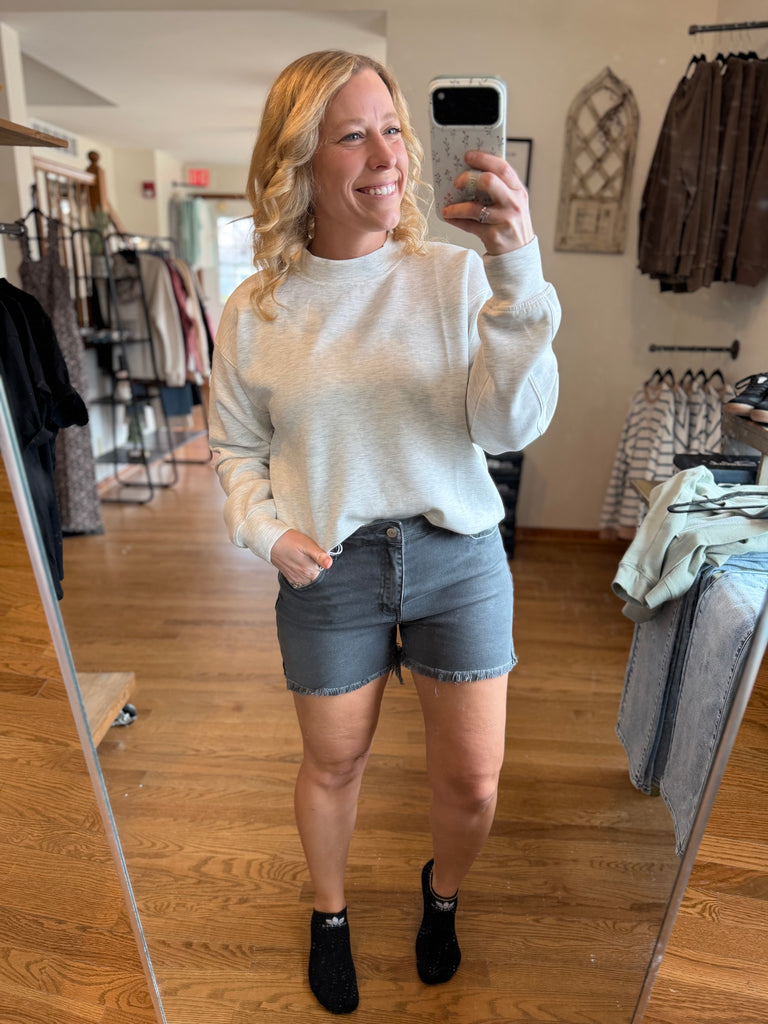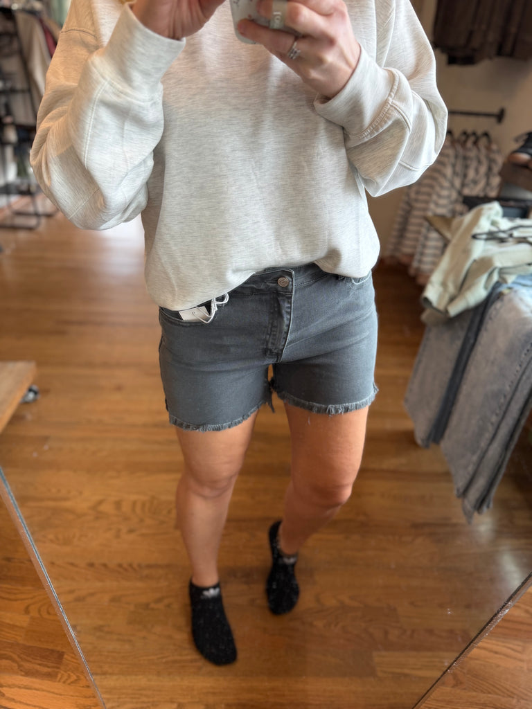 Zenana Ash Black Acid Wash Frayed Hem Shorts