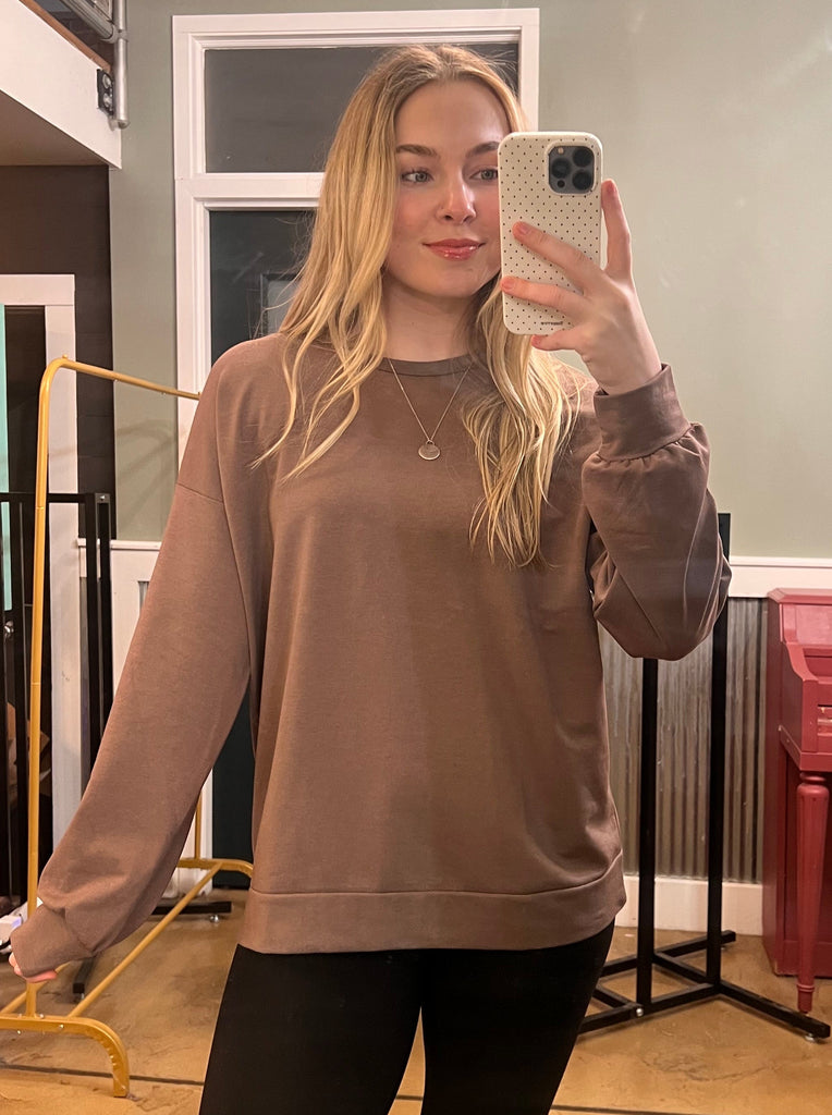 Mocha French Terry Crewneck Top