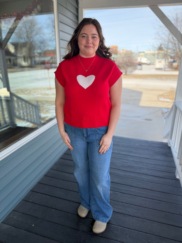Red Puff Sleeve Henley Sweater