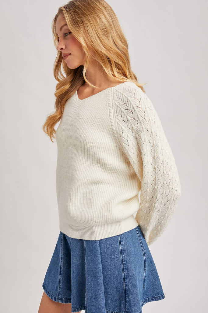 Ivory V-Neck Ribbed Knit Sweater