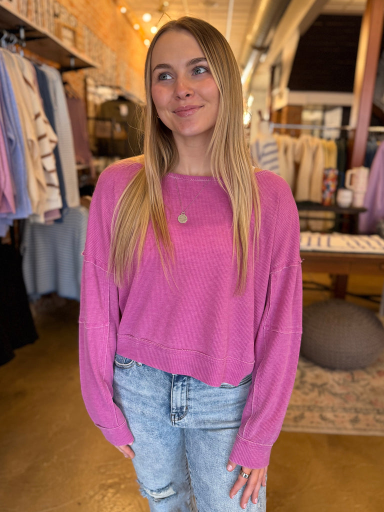 Orchid Raw Edge Waffle Knit Pullover