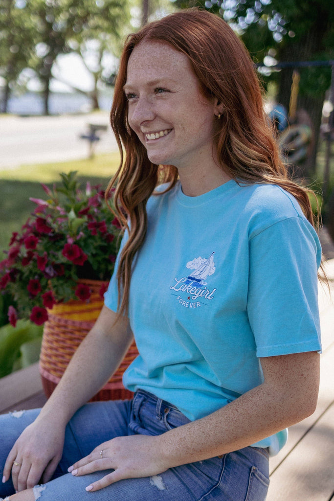 LakeGirl Caribbean Blue Sailboat Short Sleeve Tee