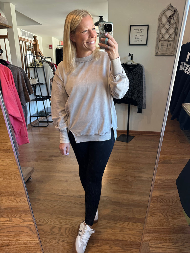Ash Mocha Acid Wash Exposed Seam Sweatshirt