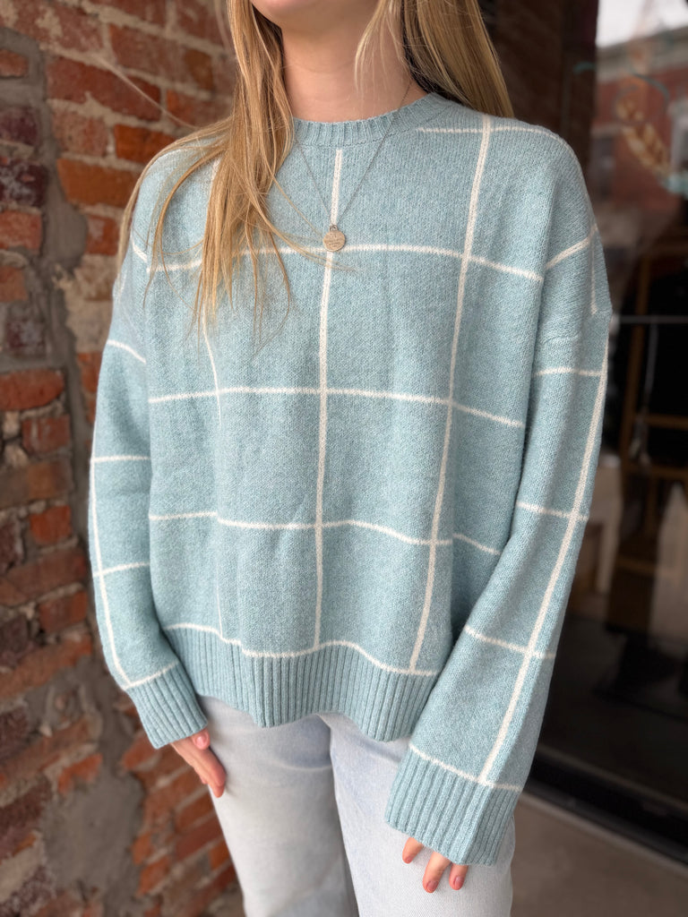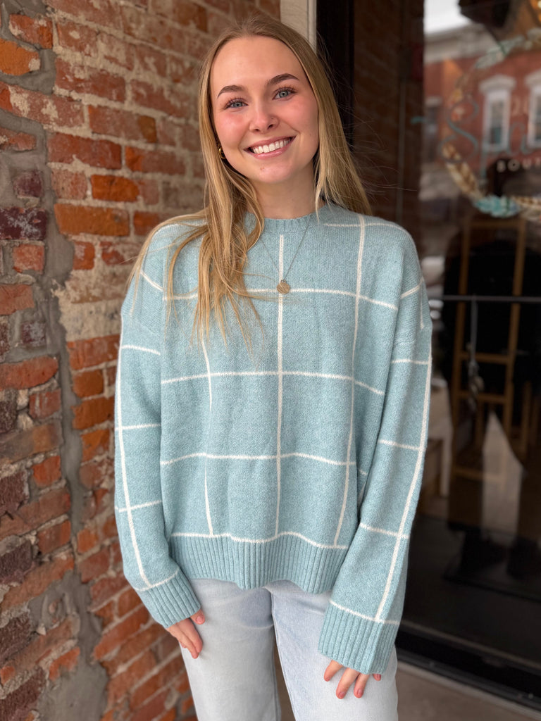 Blue Checkered Crewneck Sweater