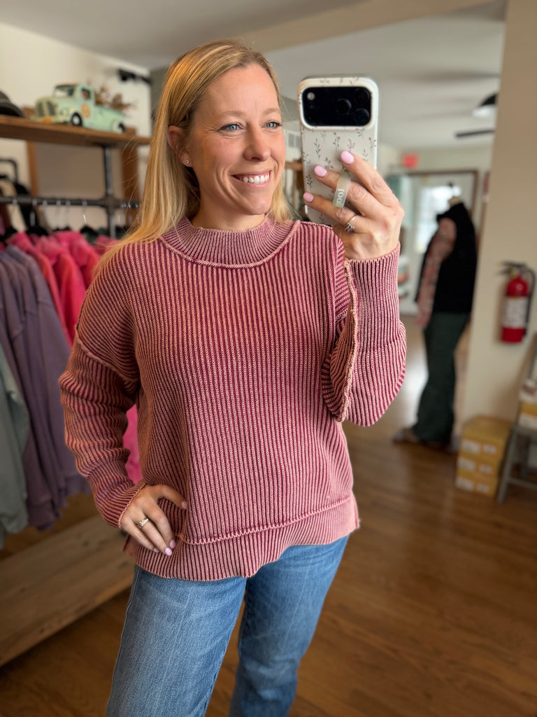Chocolate Mineral Wash Side Slit Oversized Sweater