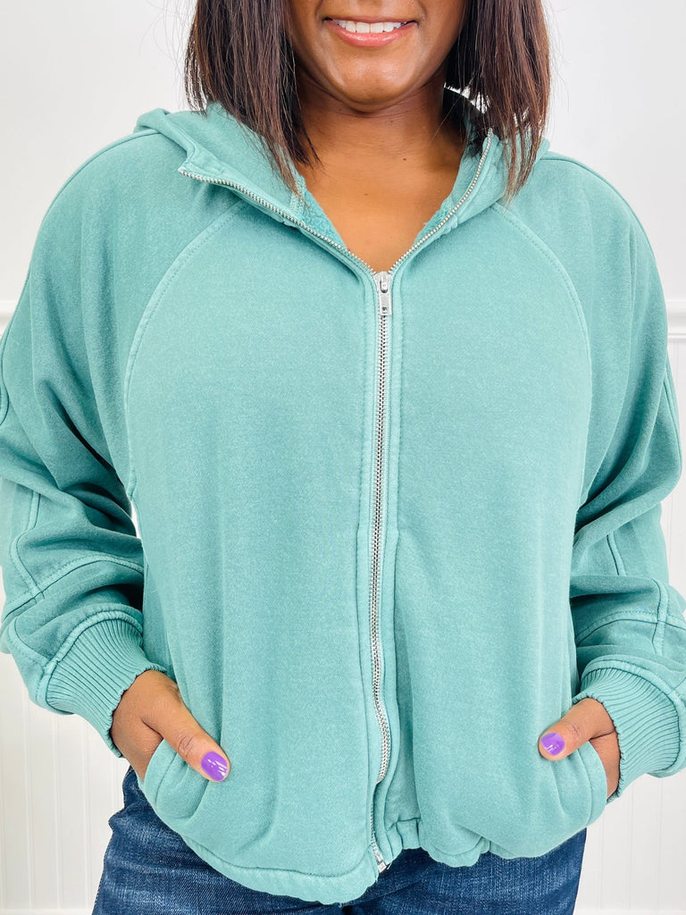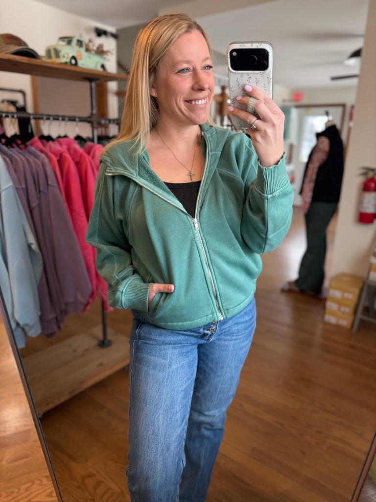 Dark Green Fleece Mineral Wash Zip Up Hoodie