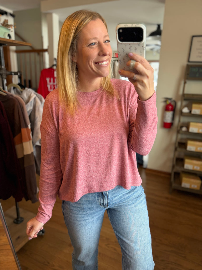 Crafted from the best-selling brushed Hacci fabric that feels as light and airy as a cloud, this long sleeve top is designed for effortless comfort and style. Featuring a relaxed fit with a single back pleat for added shape and movement, it’s the perfect layer for lounging, casual days, or wherever life takes you.