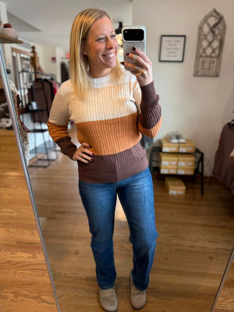 Latte Colorblock Cable Knit Sweater