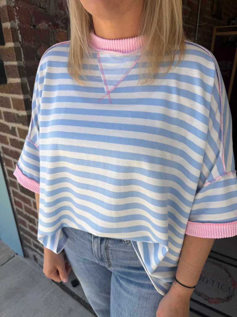 Light Blue & Pink Stripe Pullover Top