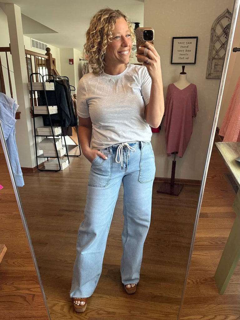 Lovervet Drawstring Wide Leg Jeans