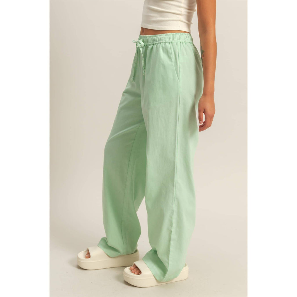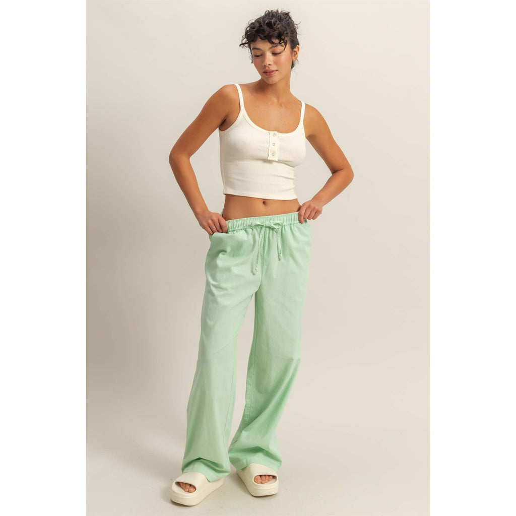 These lightweight pants feature a high-rise cut with a drawstring waist that allows you to easily customize the fit. They have a relaxed silhouette, making them great for spring and summer.