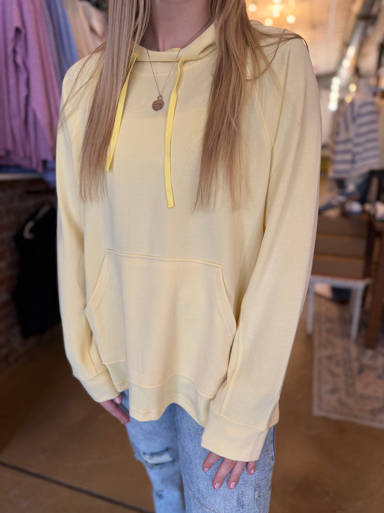 Easygoing and elevated, the Laguna Dune Hoodie is your new everyday essential. Made from our signature sand-washed scuba fabric with a buttery-soft, spongy hand feel, this pullover delivers comfort without compromising on style. It features a slouchy mock neck with adjustable drawstrings, relaxed raglan sleeves, and a longline silhouette with 8" side slits and a subtle high-low hem for added movement. Finished with a classic kangaroo pocket, it’s the perfect piece to throw on post-yoga, pre-coffee, or anytime in between.